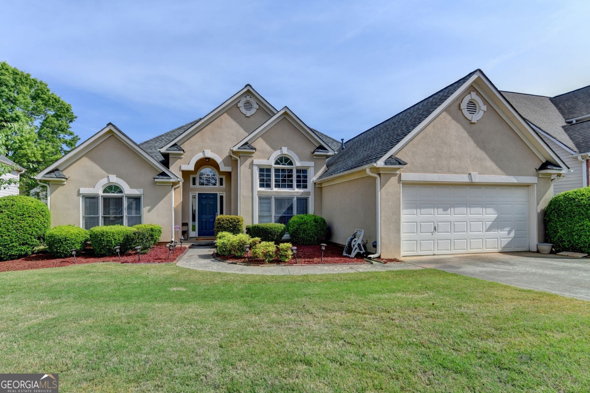 Enjoy One level living with this BEAUTIFUL RANCH HOME in top-rated North Gwinnett School District, Nestled on a quiet cul-de-sac in Suwanee. You'll be greeted by an abundance of the natural light and soaring high ceilings that create a bright, open atmosphere throughout the home. Airy open floor plan with separate dining room area provides additional space for gathering and the great room features a cozy fireplace and a ceiling fan with vaulted ceilings, The sun-lit kitchen features white cabinets, stainless appliances, tile backsplash, tile flooring and electric cooktops. The desirable split bedroom floor plan provides added privacy, with primary suite set apart as a relaxing retreat. Primary suite with tray ceiling features a garden tub, double vanity, separate shower and walk-in closet. Step outside to the expansive flat-level backyard offers endless possibilities for outdoor activities or gardening. Ideally situated in a community featuring a swimming pool and tennis courts, this home also enjoys a prime location close to shopping, dining, parks, and the Suwanee Town Center. The home is currently occupied.
