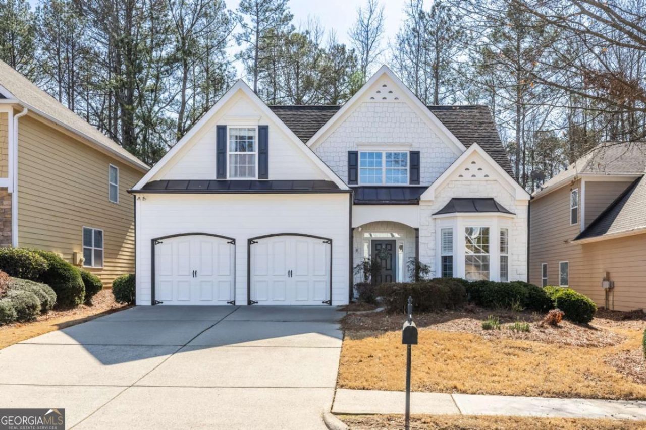 South-facing home in the Sharon / South Forsyth High School district welcomes you with a covered entry and two-story foyer. The master suite on the main level, with an open floor plan, includes a two-story great room with a wall of windows that opens to the kitchen and breakfast area, featuring a ducted kitchen vent hood and cabinetry with built-in pull-out trays.A gorgeous sunroom overlooks the beautiful, private patio and backyard-offering flexible space for a media room, office, or play area. Hardwoods run throughout the kitchen, keeping/breakfast room, and dining room.The spacious owner's suite boasts a tray ceiling, sitting room, generous walk-in closet, and a private en-suite bathroom with dual vanities, a soaking tub, and a separate shower, along with private access to the patio.Upstairs, you'll find three additional large secondary bedrooms and a full bathroom, plus a loft area overlooking the great room.Washer/dryer included.This spacious, well-maintained home comes with excellent owner records. Brand-new exterior paint was completed in 2025. The water heater was replaced in 2022. The garage door mechanical system and sensor were replaced in 2025. The AC motor was replaced in 2025. A newer vent hood was installed in 2021, along with a newer microwave.The backyard backs to a wooded common area for added privacy. The HOA covers all yard maintenance (including two pine straw installations per year), pool access, and trash service. Sidewalks run throughout the community.Walking distance to Publix, Sharon Springs Park, Forsyth County Public Library, and South Forsyth Middle School-all within easy reach. Just minutes from GA-400, Highway 141, The Collection at Forsyth, Laurel Springs Golf Course, and more.All furniture and wall hangings are negotiable. HOA rental restriction but rental space is currently available in the community.