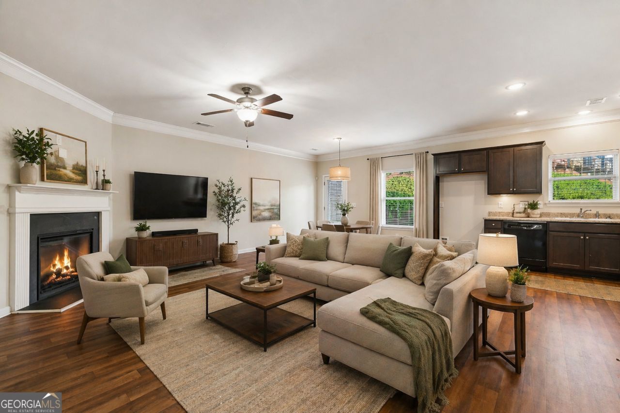 Charming 3BR/2.5BA Townhome with Scenic View! Fresh paint and new LVP flooring throughout. Open-concept kitchen with stainless steel appliances and pendant lighting overlooks the family room and dining area. Cozy fireplace in the family room. Spacious primary suite with tray ceiling, double vanity, and separate tub/shower. Two additional bedrooms share a full bath. Community amenities include swim, tennis, clubhouse, sidewalks, and greenspace. Move-in ready! Some photos have been virtually staged to help buyers visualize the property's potential.