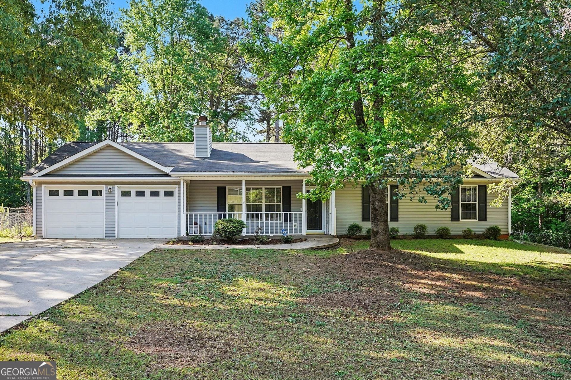This charming 3-bedroom, 2-bathroom ranch-style home offers comfortable living with a spacious family room featuring a cozy fireplace. The eat-in kitchen provides a welcoming space for everyday meals. The primary bedroom includes a walk-in closet and a private ensuite bathroom with an oversized tub, perfect for relaxing. Enjoy outdoor living with a covered front porch, a fenced backyard, and a patio ideal for entertaining. Additional highlights include a 2-car garage for convenience and storage.